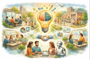 La méthode est résolument participative. Les situations concrètes, les projets en cours, les tensions, les interrogations et les intuitions des participants constituent la matière première du travail. L’objectif n’est pas d’appliquer des recettes, mais de faire émerger une compréhension partagée, de relier les points de vue et de construire ensemble des repères utiles pour l’action. L’intelligence artificielle est intégrée comme un outil de dialogue et d’exploration, mis en regard de l’intelligence humaine, de l’expérience professionnelle et de l’intelligence collective.